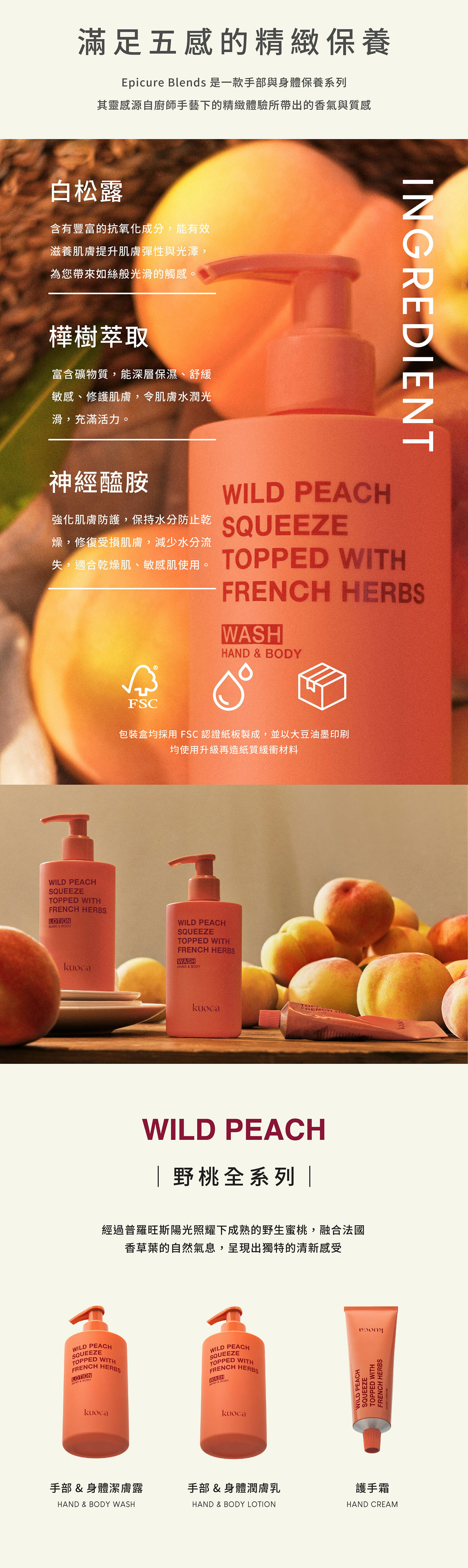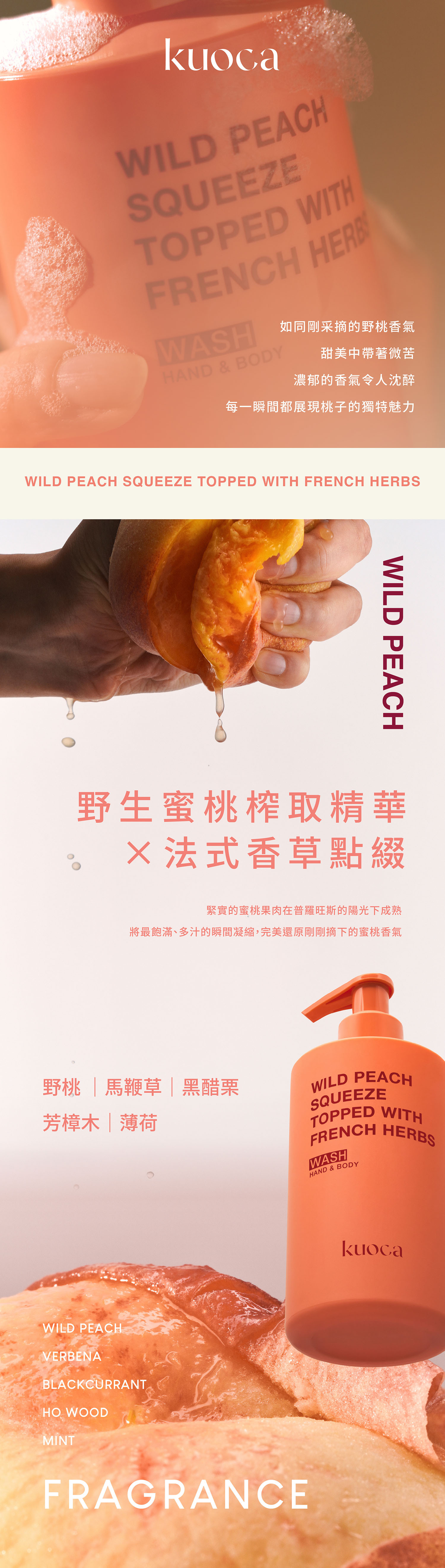 經過普羅旺斯陽光照耀下成熟的野生蜜桃,融合法國香草葉的自然氣息,呈現出獨特的清新感受。