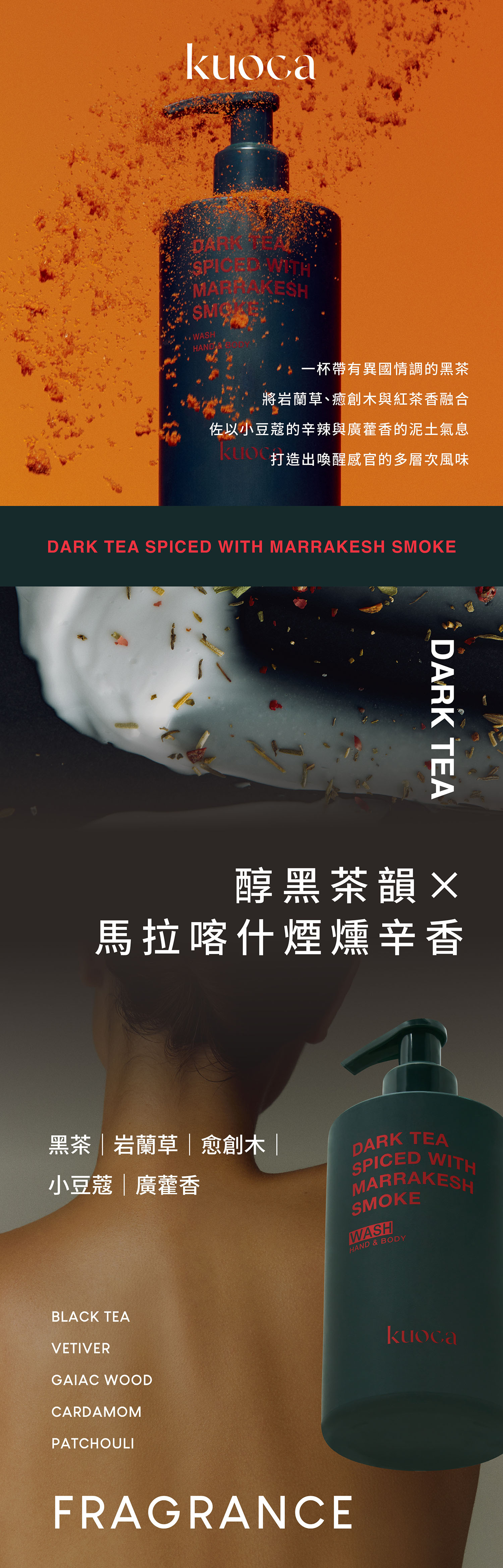 寧靜的岩蘭草、癒創木與濃郁乾燥黑茶交織,沉穩木質調中帶有溫暖茶韻,再以小豆蔻的辛香與清新廣藿香提升層次,營造靜謐深邃的感官體驗。