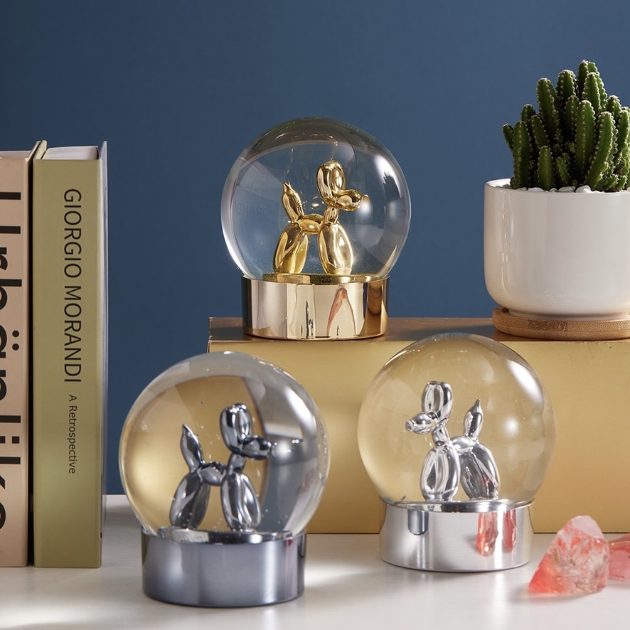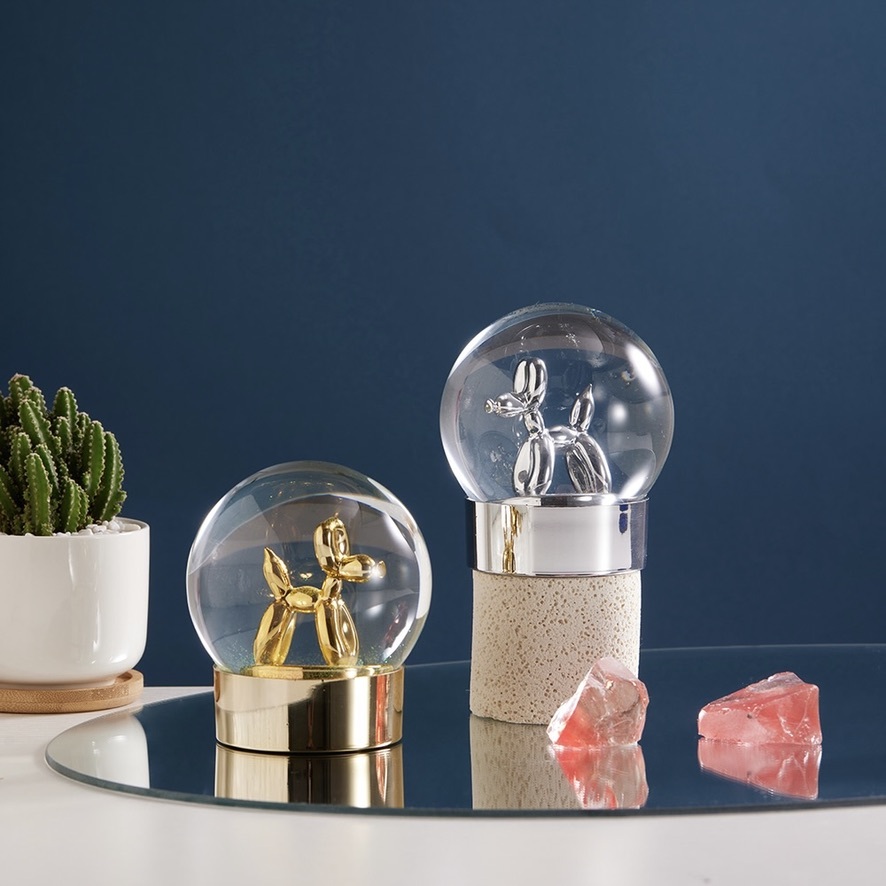 經典氣球狗公仔:水晶球內嵌有一隻設計精巧的氣球狗公仔,為這款擺飾增添了無與倫比的可愛因素。表面使用先進的電鍍材質,使整體呈現出高端而精緻的感覺。