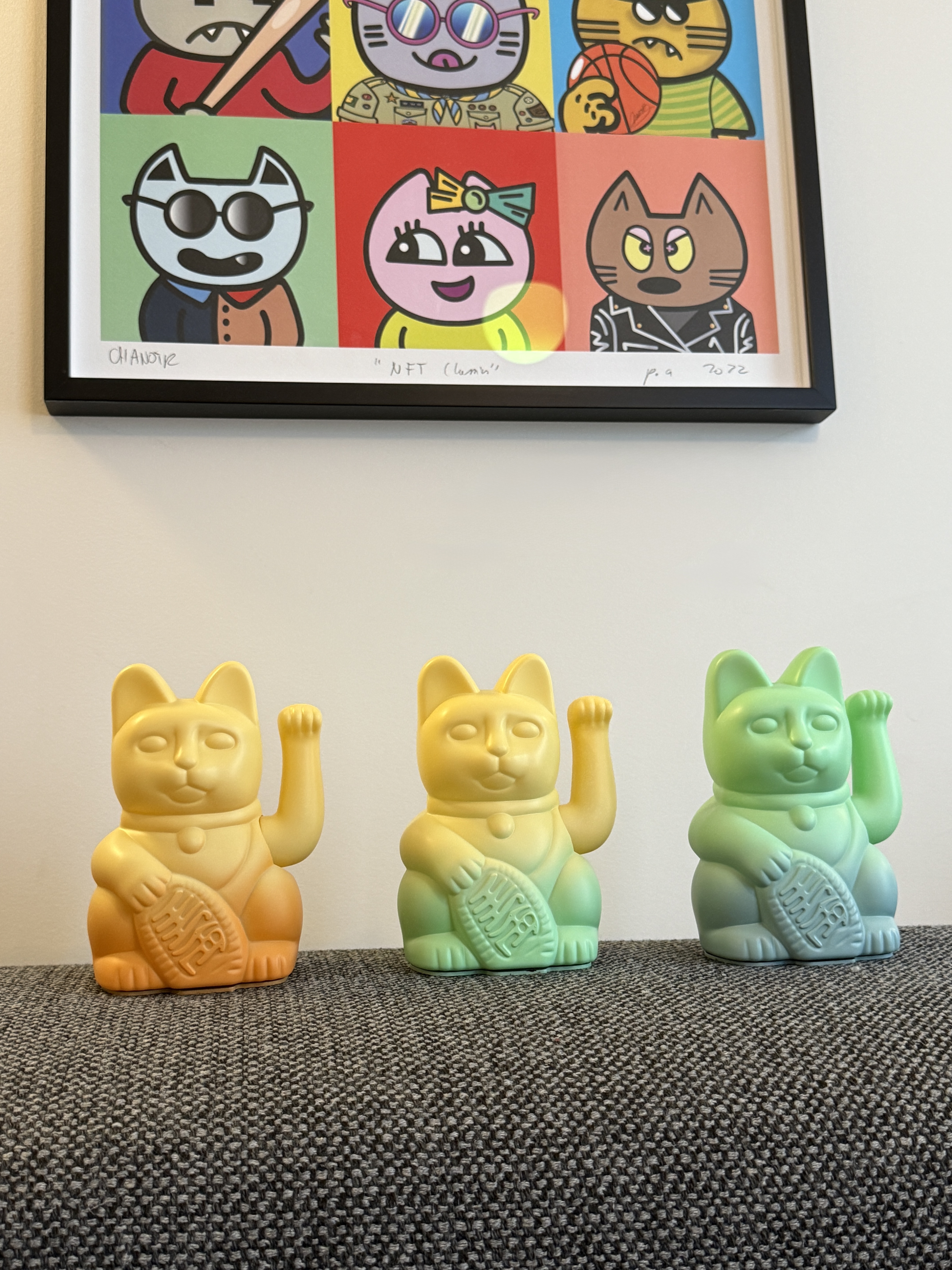 來自德國的DONKEY工作室的幸運繽紛招財貓,以傳統招財貓為原型,設計出現代又洋氣的招財吉祥物。它們不僅可以為您的店鋪調性畫龍點睛,吸引路過年輕族群的注意,放在家中的也可以妝點居家空間,帶來一份療癒力量。