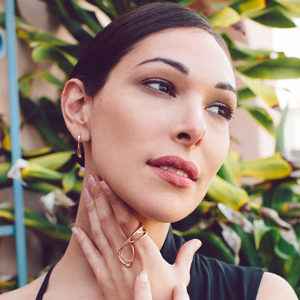 這款醒目而精緻的耳環追尋了露珠掉落的軌跡。有別於普通的水滴形狀,LACE不僅在耳環邊緣融入了更多細節處理,同時末端的微妙曲線設計也別具匠心。它優雅地墜在佩戴者的耳邊,柔和但又銳利地勾出一條宛如藝術品般完美的線。