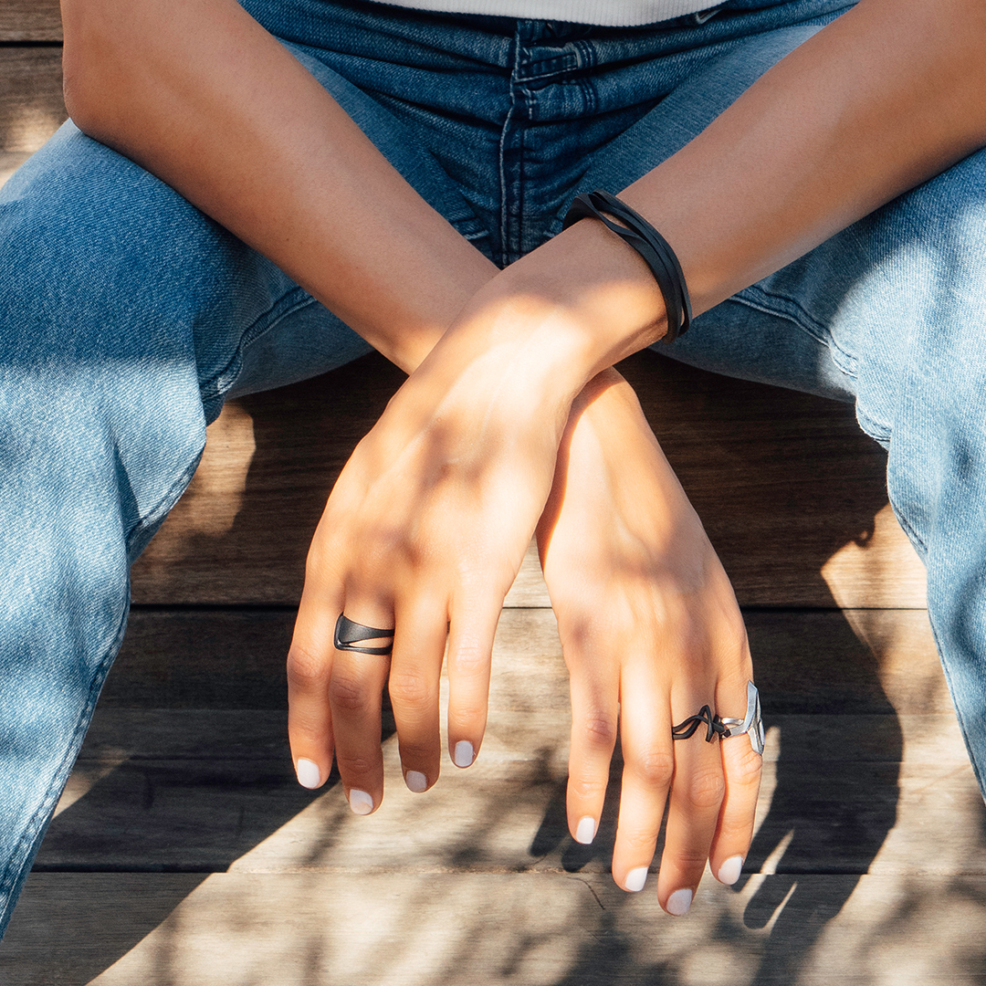 Velum系列正面的垂褶設計將LACE高精準數位化的前衛設計體現得淋漓盡致。戒指的設計從正面如雕刻般的垂褶向兩側延伸,並由面逐漸轉變為線型,成圓環包裹住您的手指。兩種元素碰撞出前所未有的張力卻又自然地過渡結合在一起,如此大膽又富有雕刻感的大師級作品,將會讓每一位追求自我風格的配戴者愛不釋手。