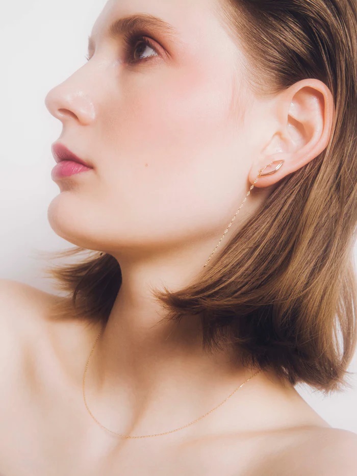 粉紅金色的柔和光澤,搭配細膩的切割技術,展現出優雅的光彩。 搭配簡約的穿搭,凸顯出女性的優雅和華麗氣氛。 耳環的固定部分採用了帶有雙層矽膠釦的設計。