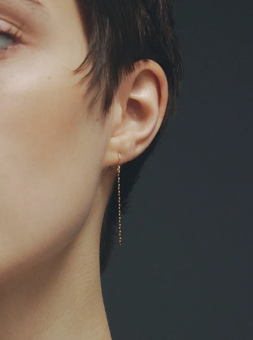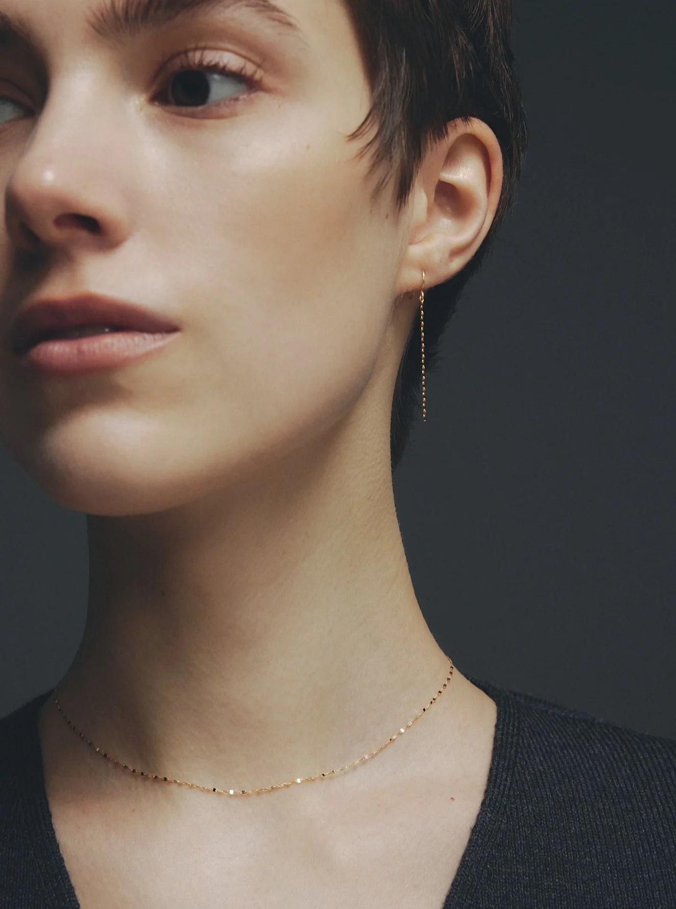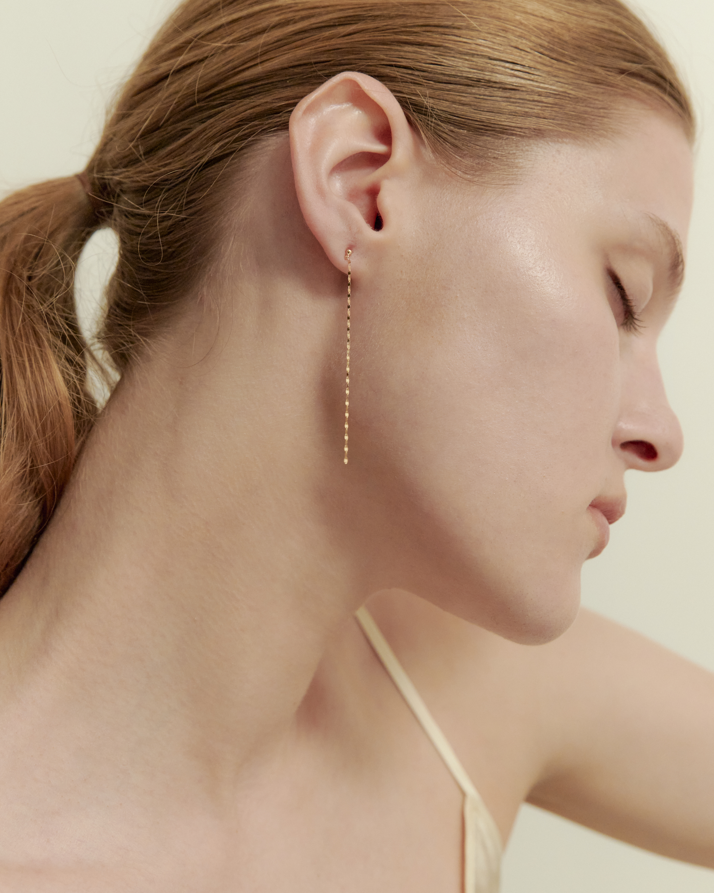 在耳際輕盈搖曳的6cm長型輪廓,為側臉增添俐落印象,