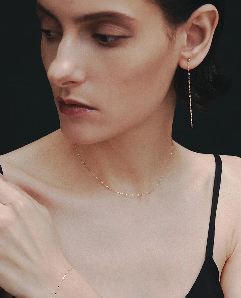 ●項鍊長度較短貼合鎖骨位置,凸顯頸部優美線條