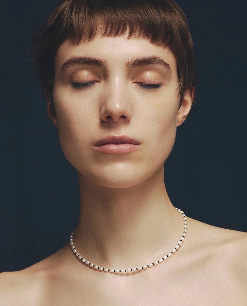 ‧珍珠之間加入小巧的黑色天然石,營造現代感與個性風格