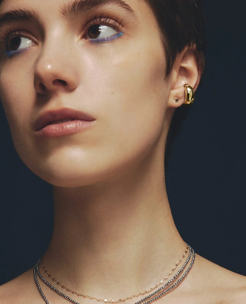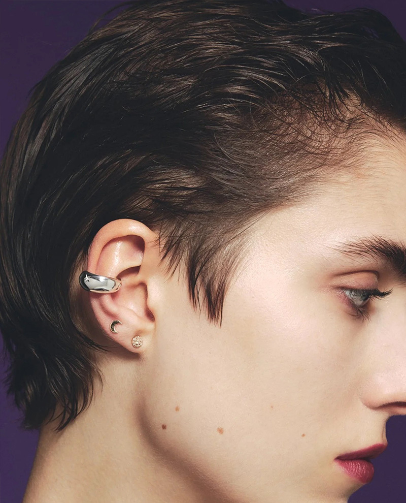 這些耳骨夾的大膽造型與精緻的星星圖案形成鮮明對比。