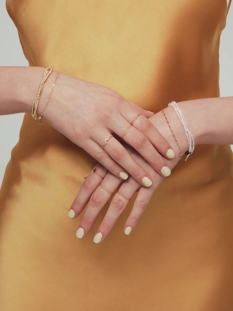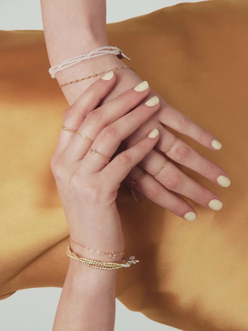 為了展現手腕的優雅細緻,特別調整設計手鍊的長度。
