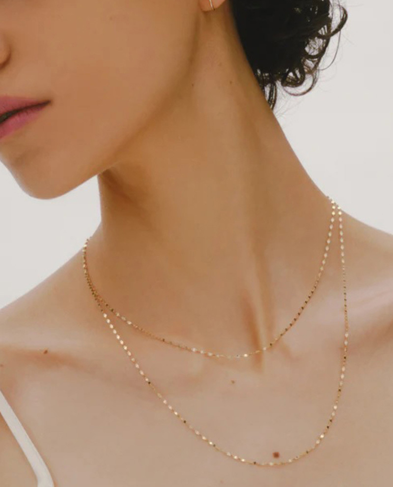 這是一條適合成熟表情,必備款的長項鍊。即使沒有額外的裝飾,10K金的閃耀光澤也能散發出引人注目的存在感。