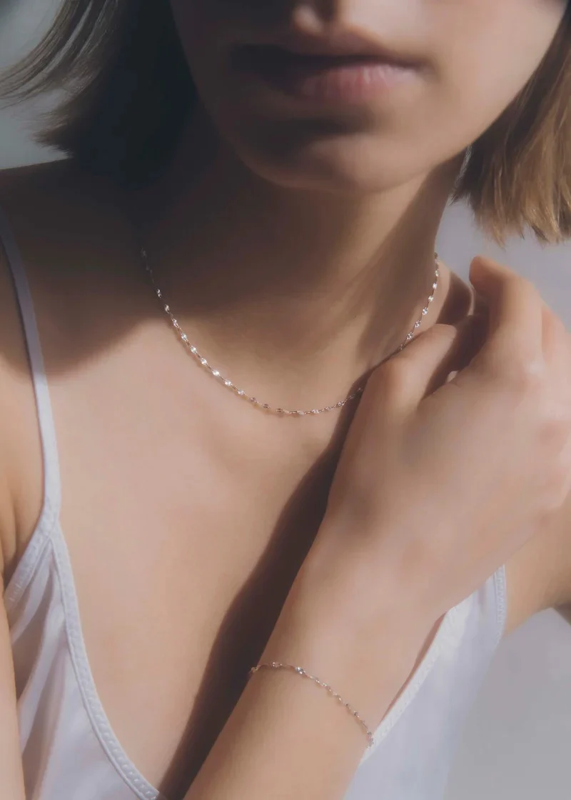 光線照射下閃耀奪目的項鍊,使用經過精心切割的美麗鍊條。