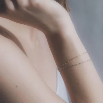 ●白金鍊條為休閒風格增添成熟感,讓膚色更顯明亮