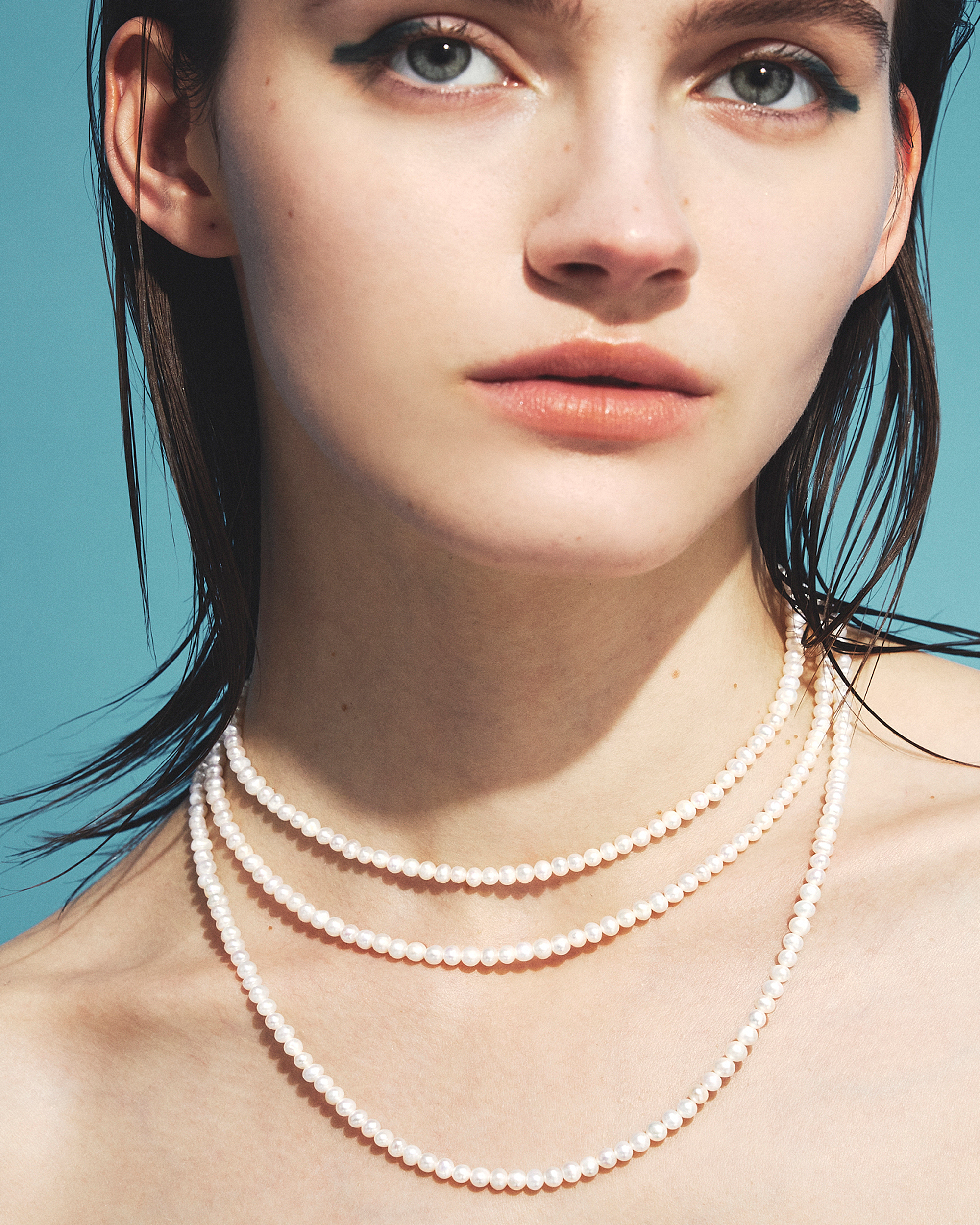 佩戴於頸部的頸鍊帶有俐落的緊緻感
