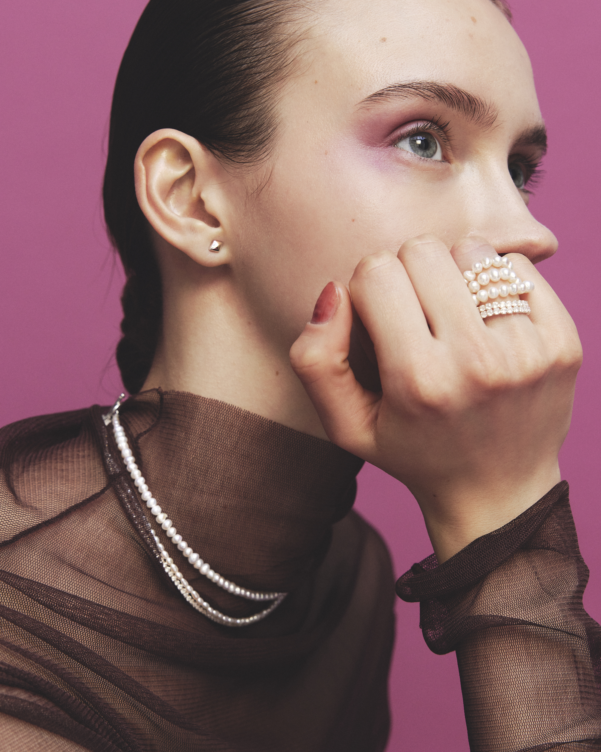 散發柔和光澤、圓潤飽滿的珍珠所構成的系列