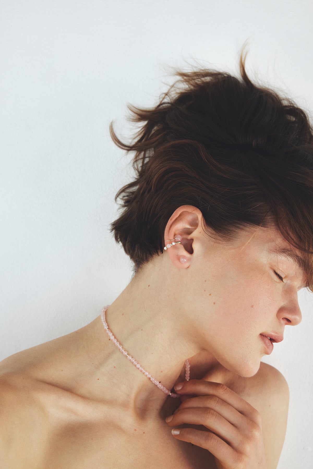 溫潤的粉色調與立體造型交織而成,與肌膚自然融合,為耳際點綴優雅而迷人的氣質。