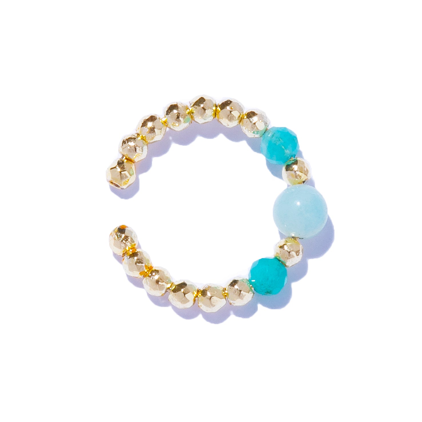 佩戴時,亞馬遜石仿佛懸浮於耳側,為造型增添一份優雅的力量。