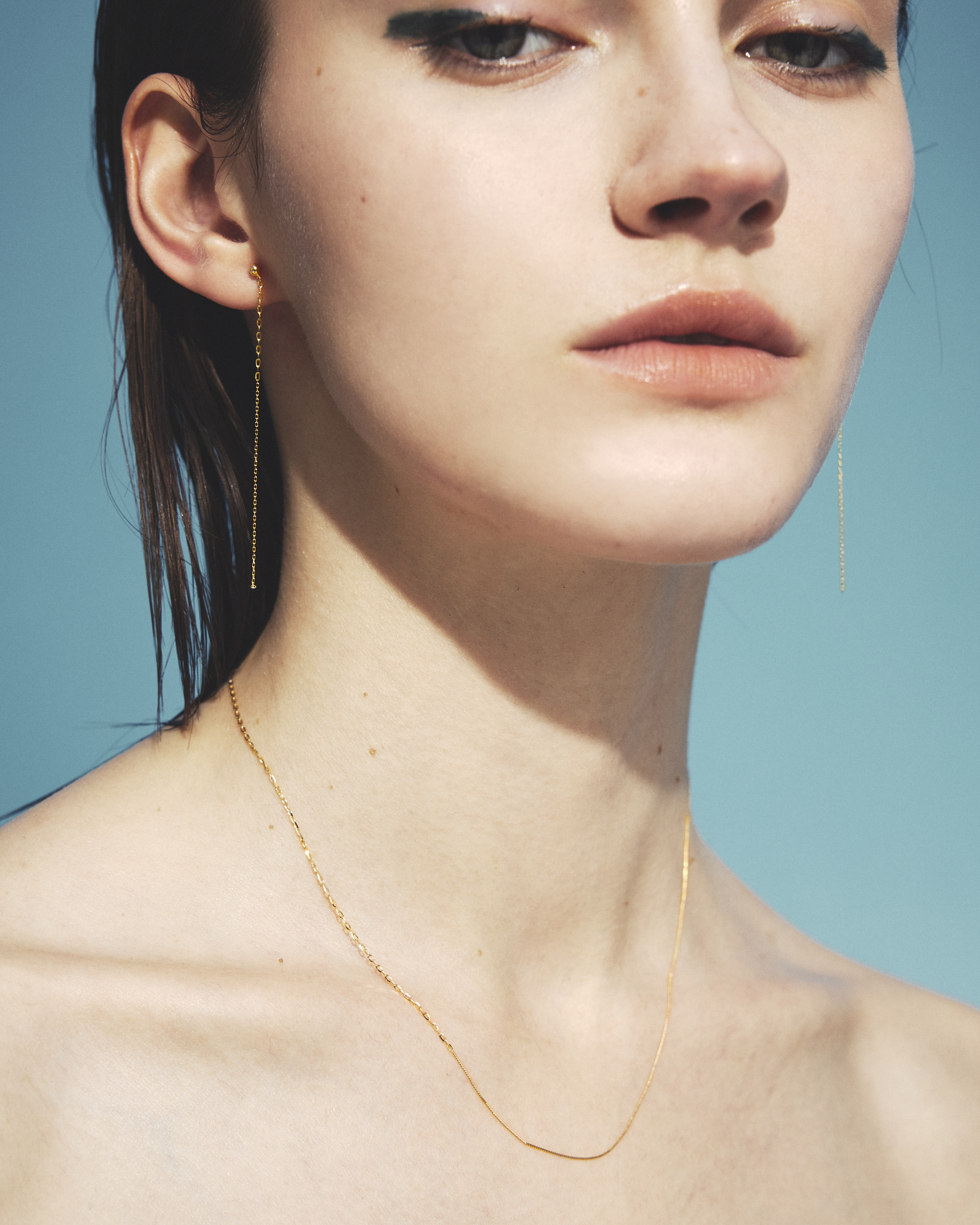 ●鍊條隨臉部動作閃爍飄動,展現純真與俐落兼具的氣質