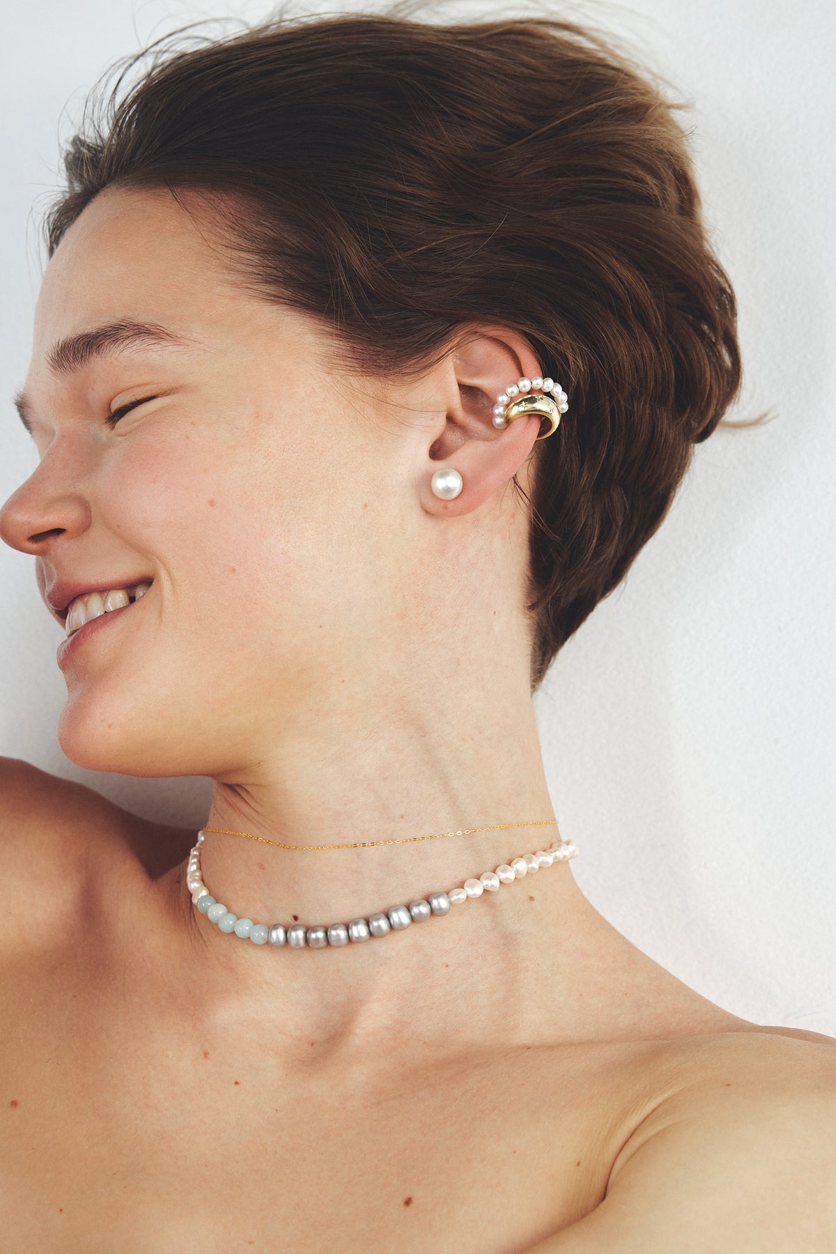 50cm的修長輪廓,不僅能垂墜在清爽的夏季針織衫上享受材質層次的對比感,與不同長度的項鍊疊戴也同樣迷人。