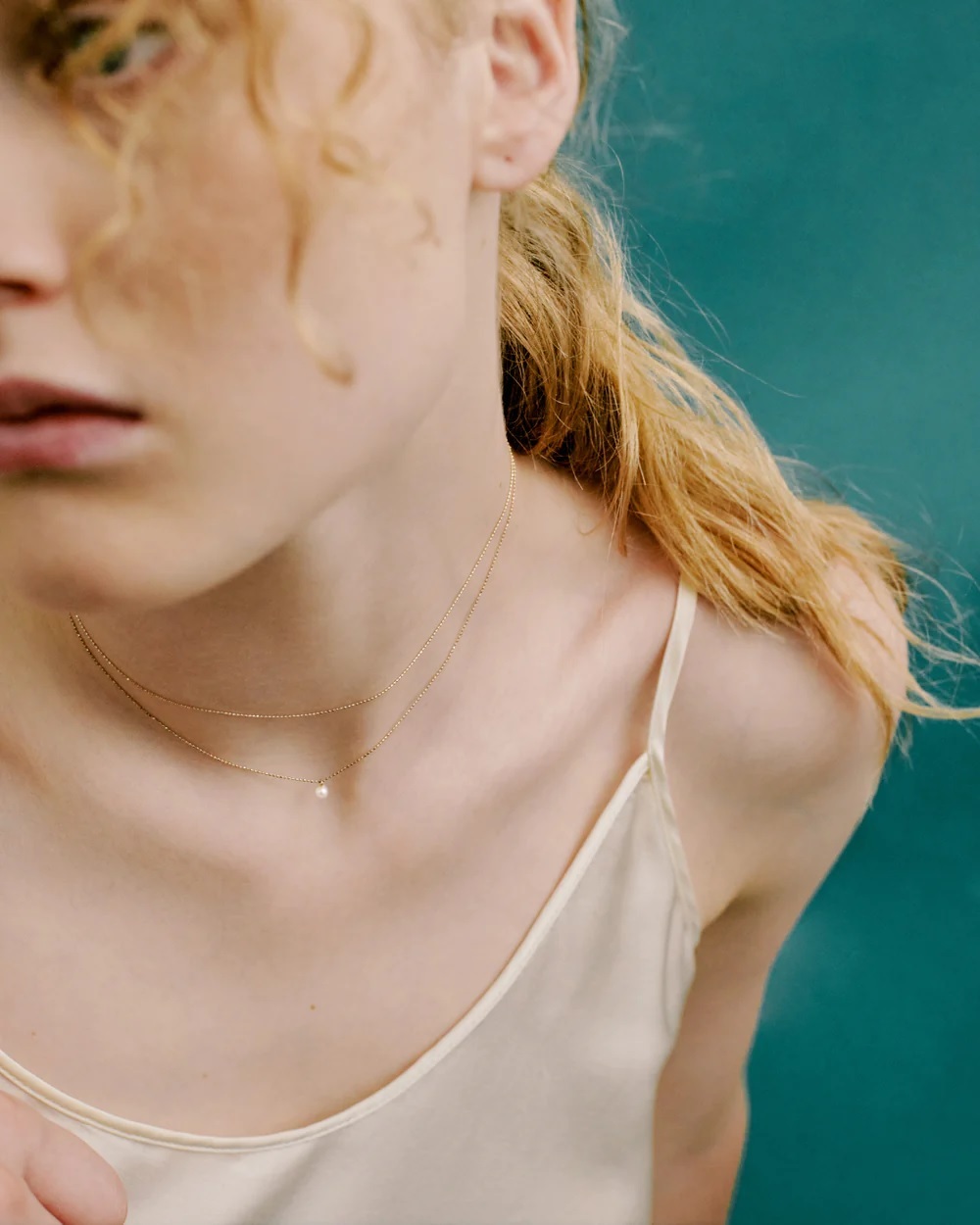 繊細璀璨的鍊條就像星辰般閃爍著,添上一顆珍珠做點綴,營造出高雅氛圍的頸鍊。