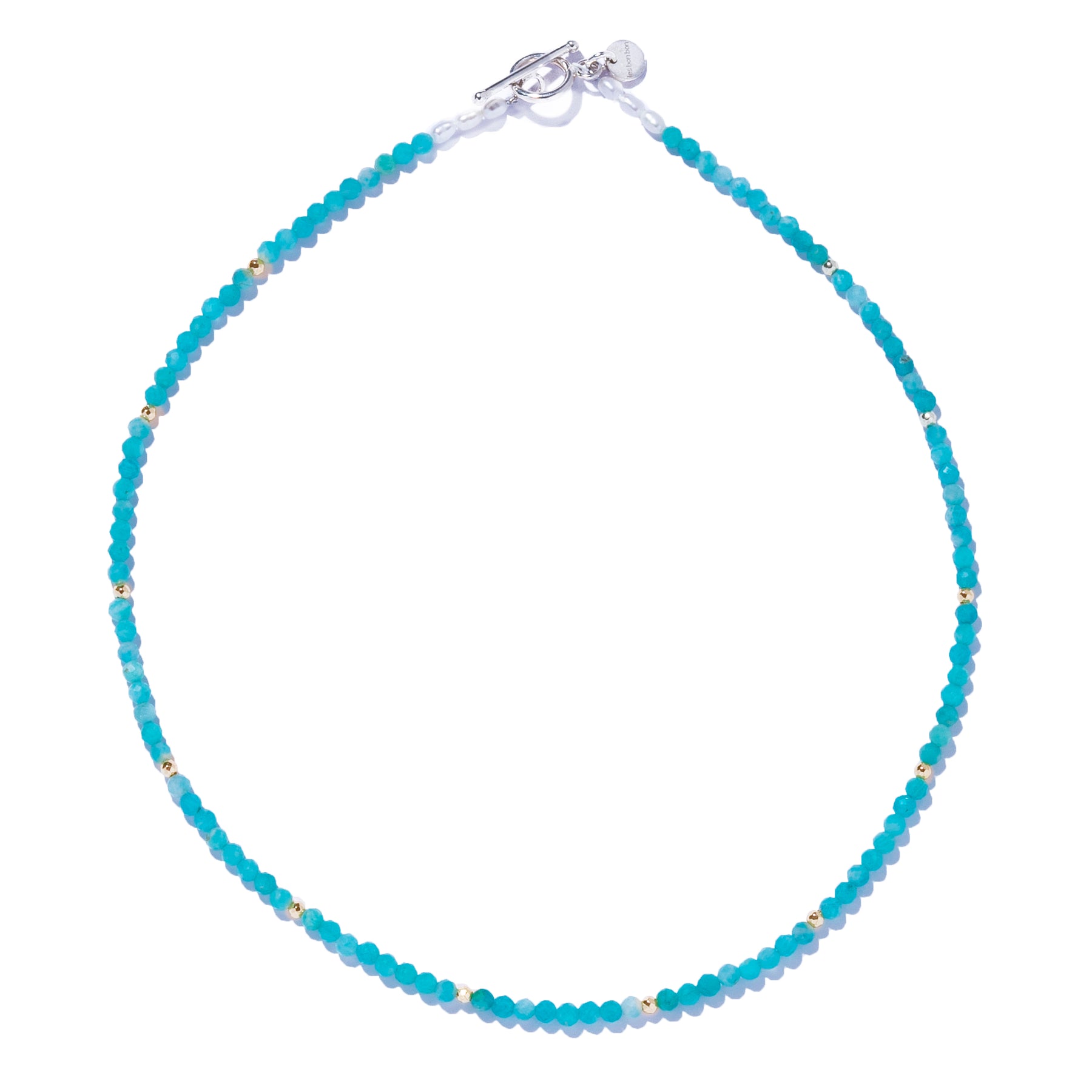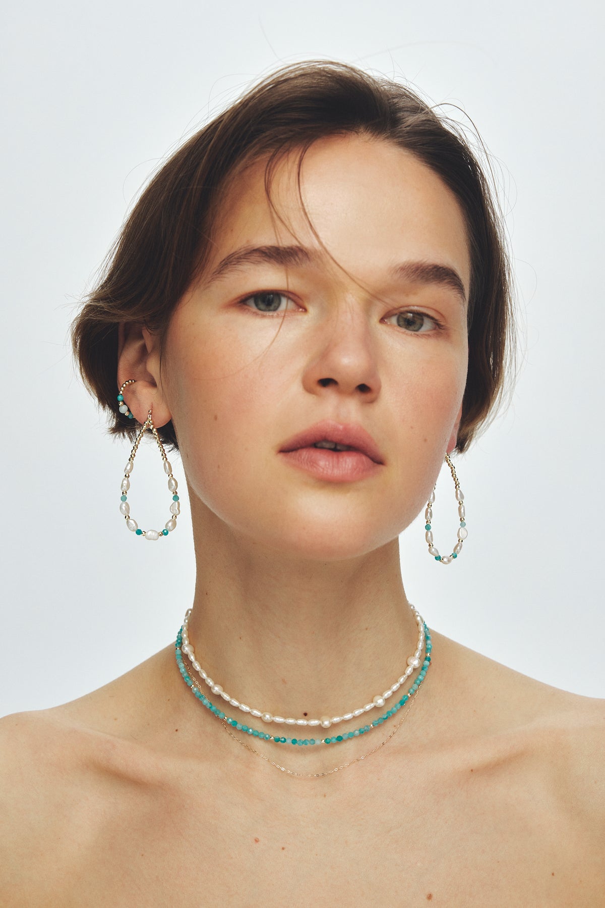 材質:亞馬遜石,金色赤鐵礦石,淡水珍珠 / 扣環・吊牌:925純銀