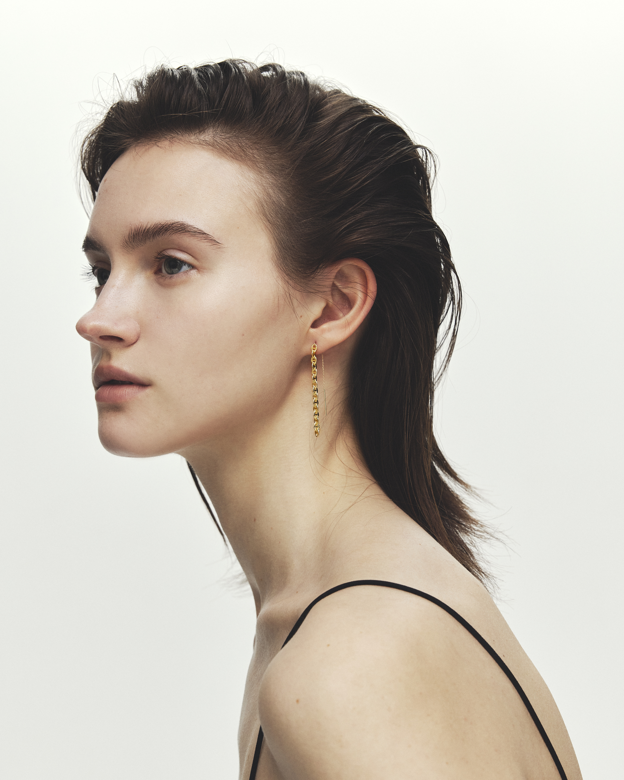 以18K黃金獨有的奢華光澤,為側臉增添華麗光彩的耳環
