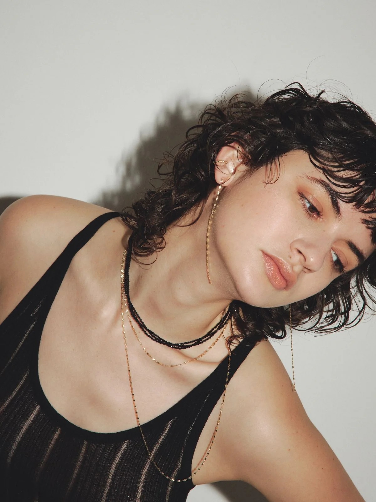 與夏季洋裝等連身裙配時,將項鍊設計成視覺上平衡感良好的長度。