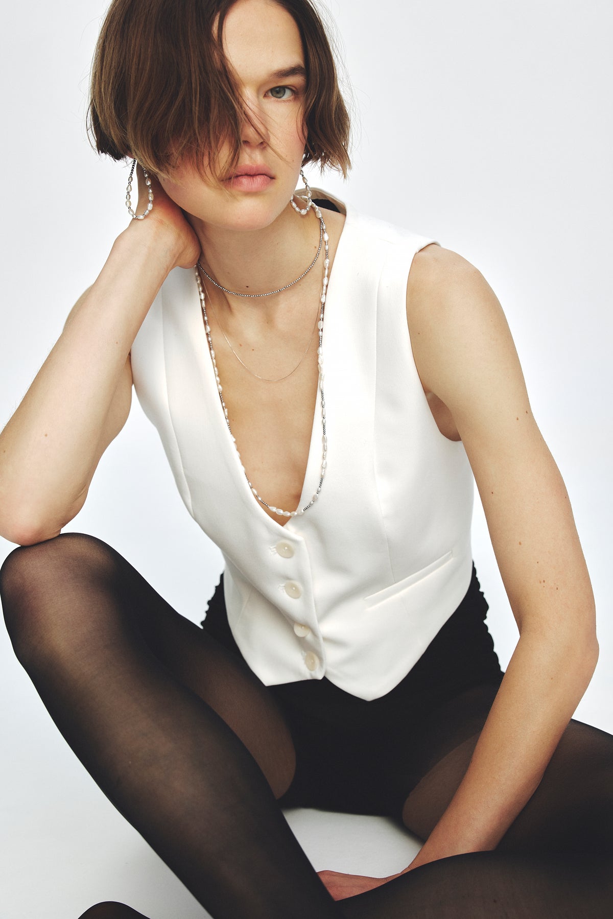 修長的比例搭配低調優雅的灰色珍珠,營造出帶有張力的色彩層次,悄悄襯托出配戴者的氣場與魅力。