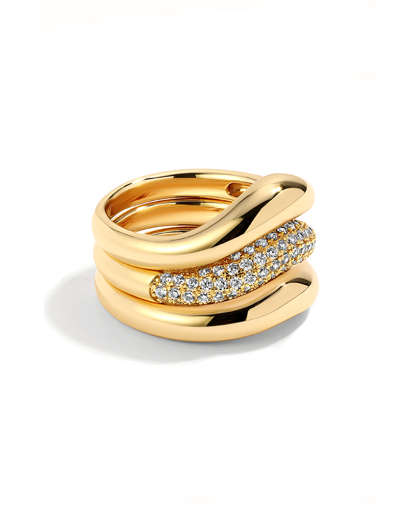 套組中的其中2枚戒指是素面設計,簡約時髦感十足,另外1枚戒指則採用滿鑽設計,鑲嵌著滿滿的鋯石,非常華麗,滿鑽的設計可以作為重要場合或特殊時刻的亮點