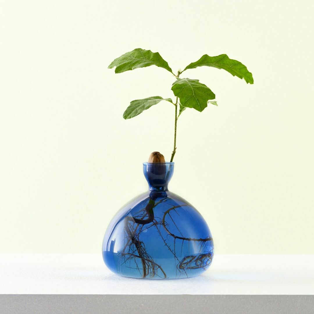 Ilex Studio 創新且設計精美的橡實花瓶,讓您可以見證採摘一顆簡單的橡實種子長成茁壯為一棵壯麗的橡樹。蜿蜒曲折的花瓶在繁榮的同時放大了根部;創造一個完美的焦點來見證植物的生長,並為最終在土壤中重新種植創造更堅固的基礎。特別設計的玻璃具有放大功能,讓您可以清楚地看到根部一天天的生長情況。