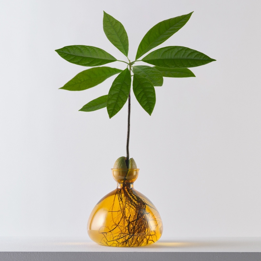Ilex Studio 改進了酪梨種子傳統的種植方法,以專屬的開口設計來支撐種子,讓您的酪梨能在發芽時保持種子乾燥,並鼓勵根部自由生長。蜿蜒曲折的花瓶在繁榮的同時放大了根部;創造一個完美的焦點來見證植物的生長,並為最終在土壤中重新種植創造更堅固的基礎。特別設計的玻璃具有放大功能,讓您可以清楚地看到根部一天天的生長情況。