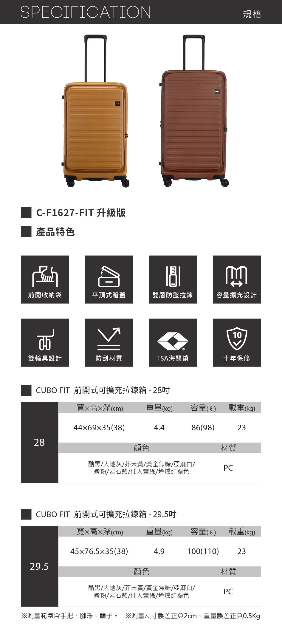 CUBO系列採用前開式設計,中間為擴充圍,不同於一般對開式行李箱,開闔時只需要極小空間,讓您不管在任何環境都能輕鬆整理行李