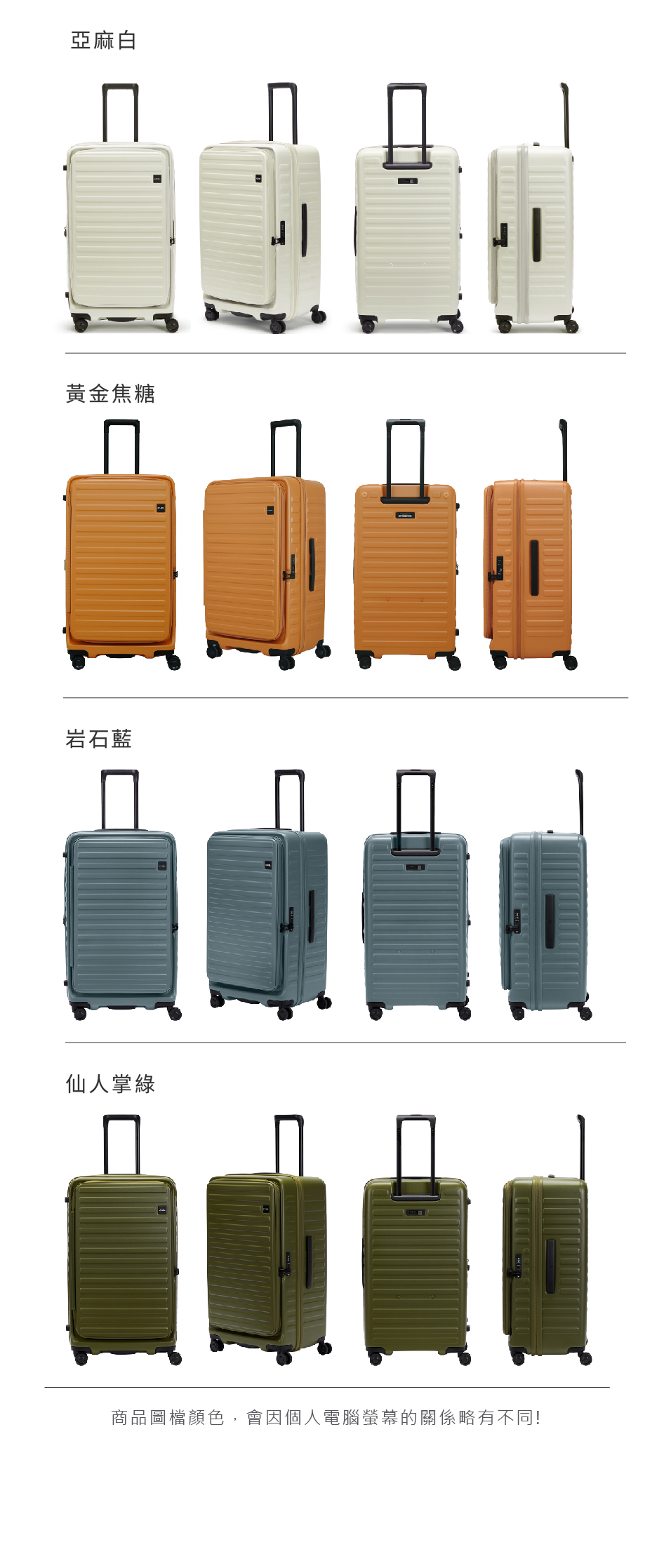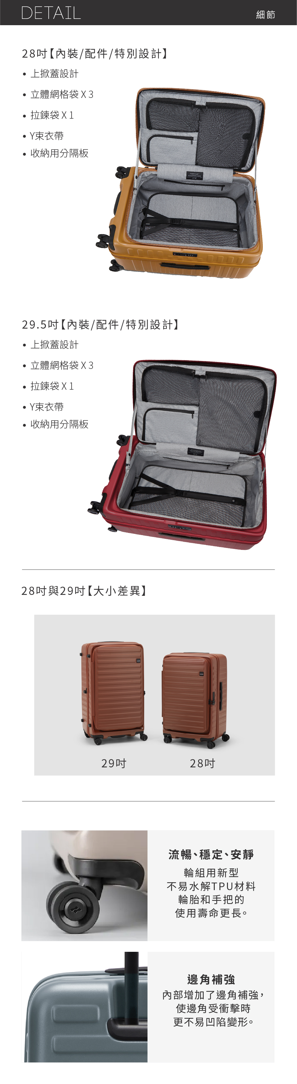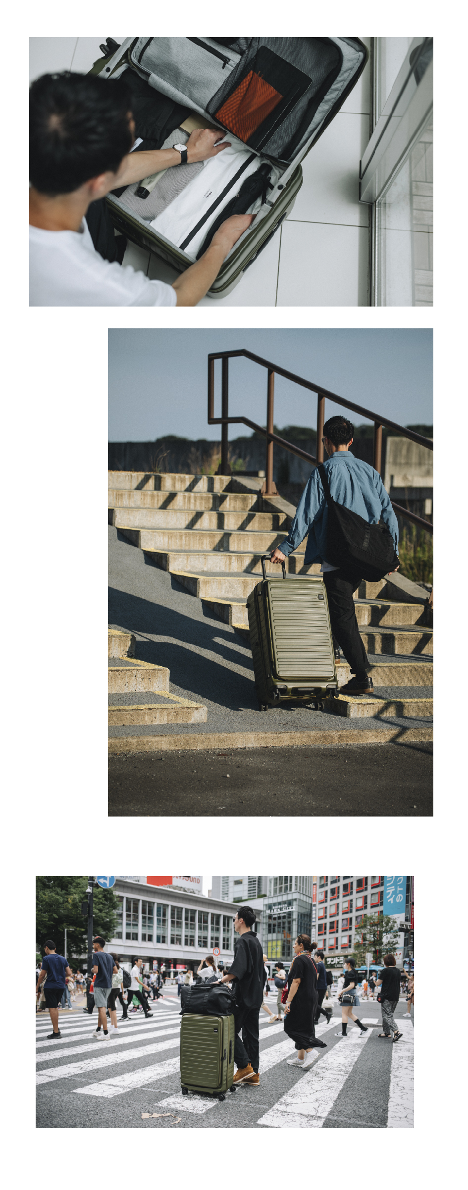 CUBO系列採用前開式設計,中間為擴充圍,不同於一般對開式行李箱,開闔時只需要極小空間,讓您不管在任何環境都能輕鬆整理行李