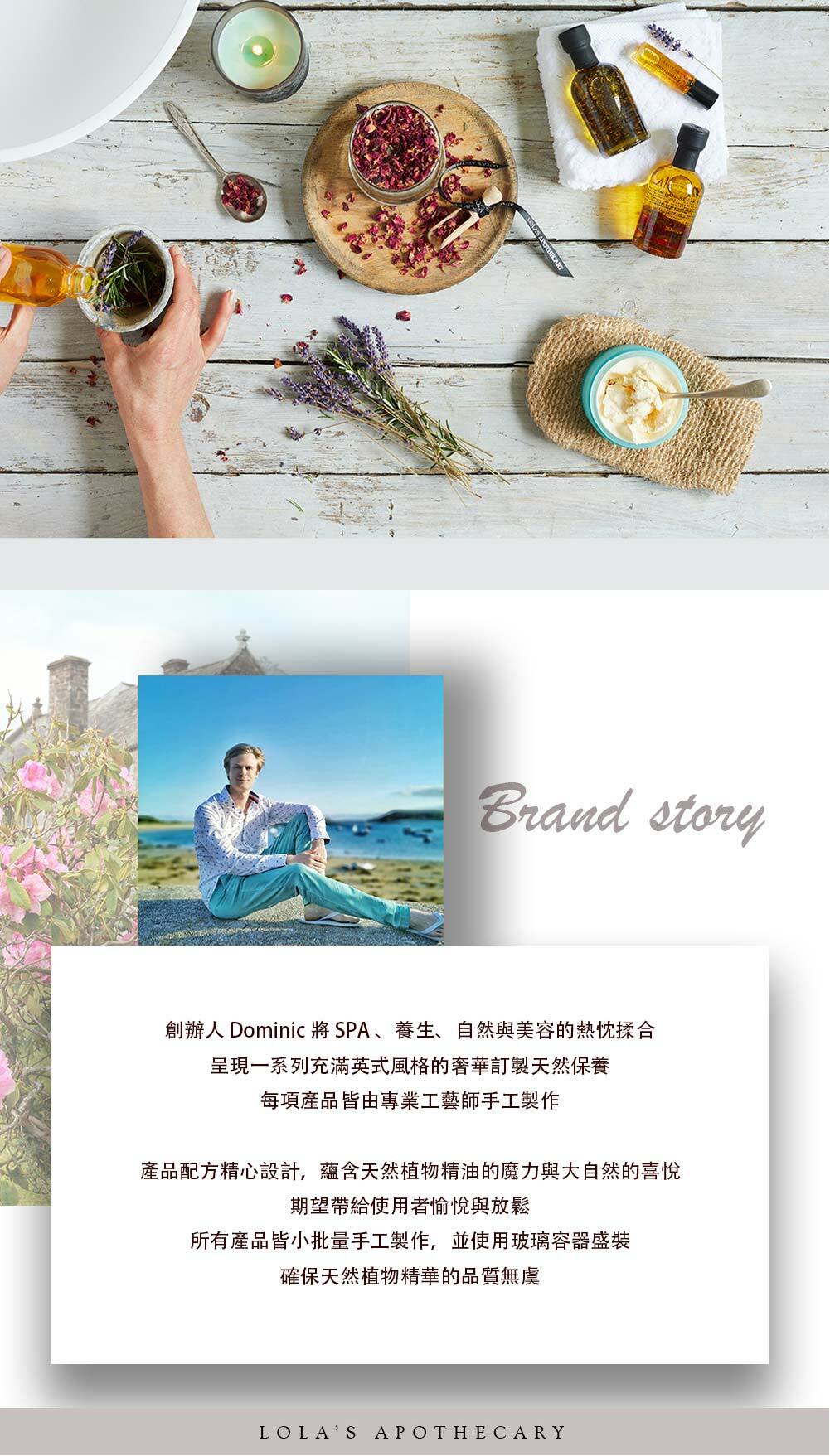 英國頂級品牌LOLA'S APOTHECARY,榮獲英國Beauty Shortlist Awards肯定。每項產品皆由工藝師手工製作,精心調製的天然配方,確保植物精華的品質無虞,打造美麗又優雅的藝術品。