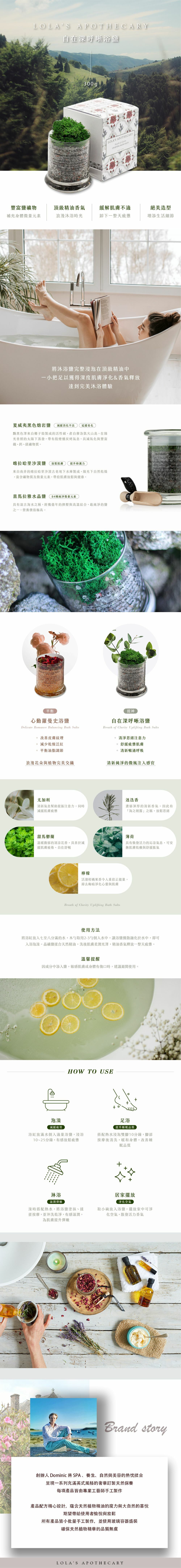 將沐浴鹽完整浸泡在頂級精油中,一小把足以獲得深度肌膚淨化&香氣釋放,達到完美沐浴體驗