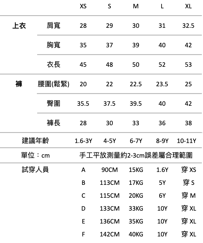 居家服皆分為上衣下身兩件式套裝販售,衣褲尺寸相同不拆賣。