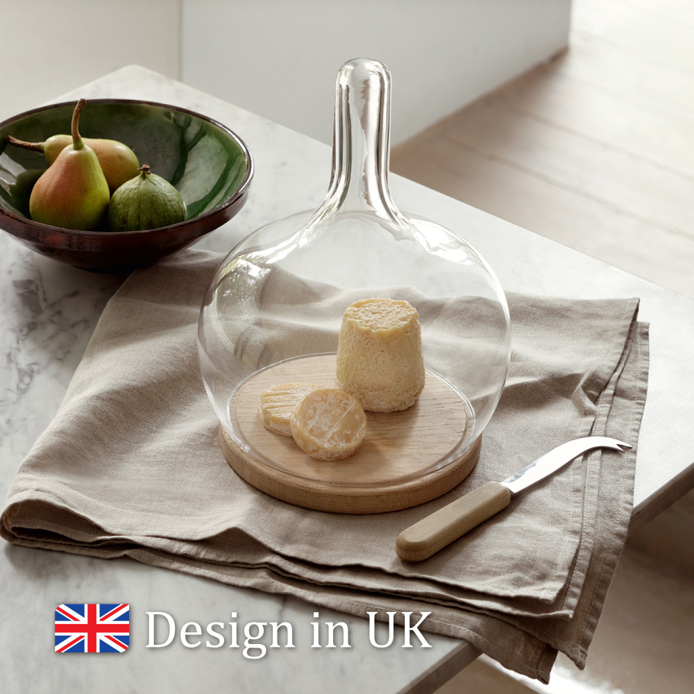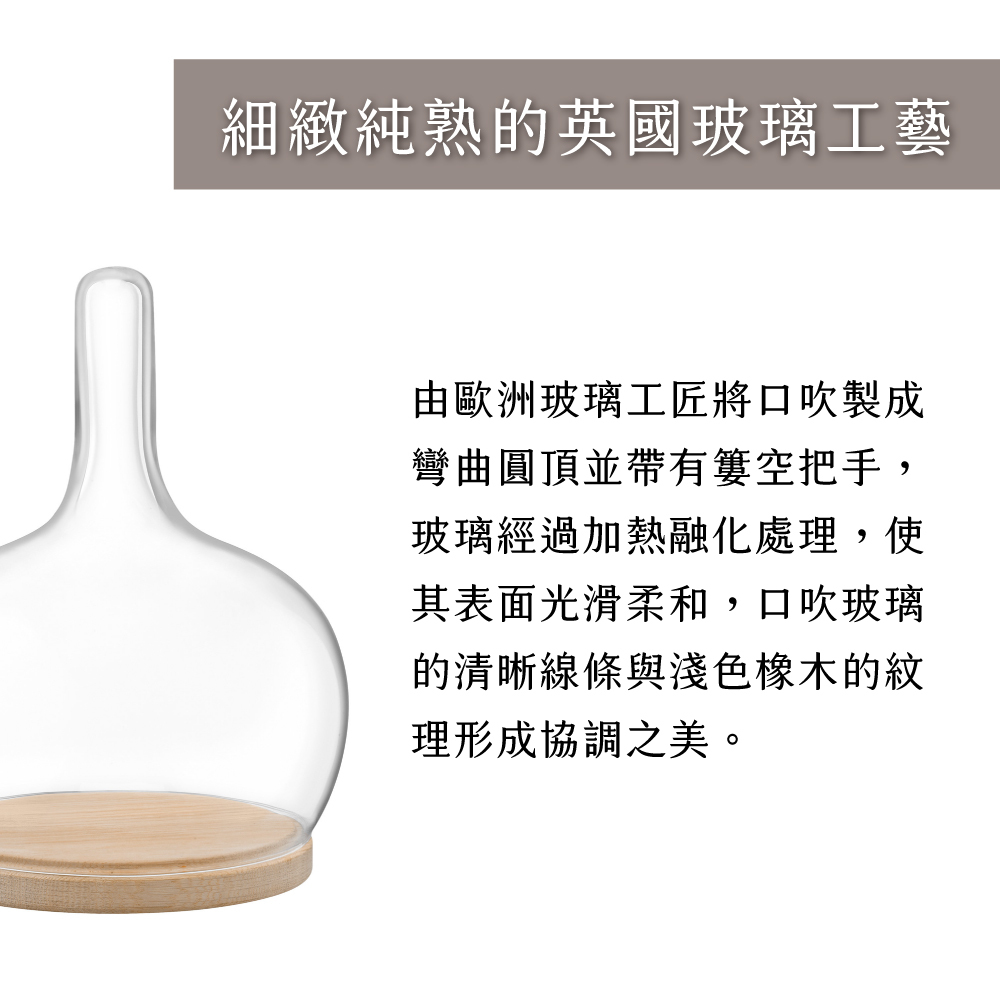 由歐洲玻璃工匠口吹製成的玻璃圓頂有著三種形狀,細長尖端可直接當作把手使用;底座由獲得FSC認證的橡木製成。