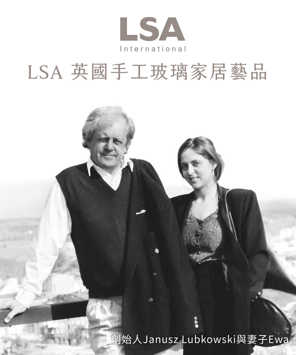 1972年創立的LSA起源於六○年代時尚產業發展活躍的英國倫敦,以生產手工吹製玻璃產品聞名,創始人Janusz Lubkowski與妻子Ewa的設計靈感源自人們的生活方式,承襲歷史悠久的工匠精神,實現超越美學和實用性,創造出造工藝與設計感皆細膩獨到的家居用品,從日常清新的風格到派對奢華感一應俱全。