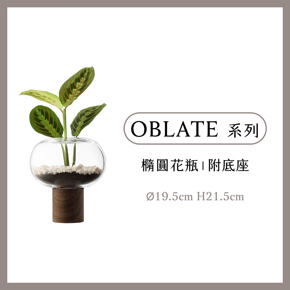LSA-OBLATE橢圓花瓶附胡桃木底座19.5cm-透明