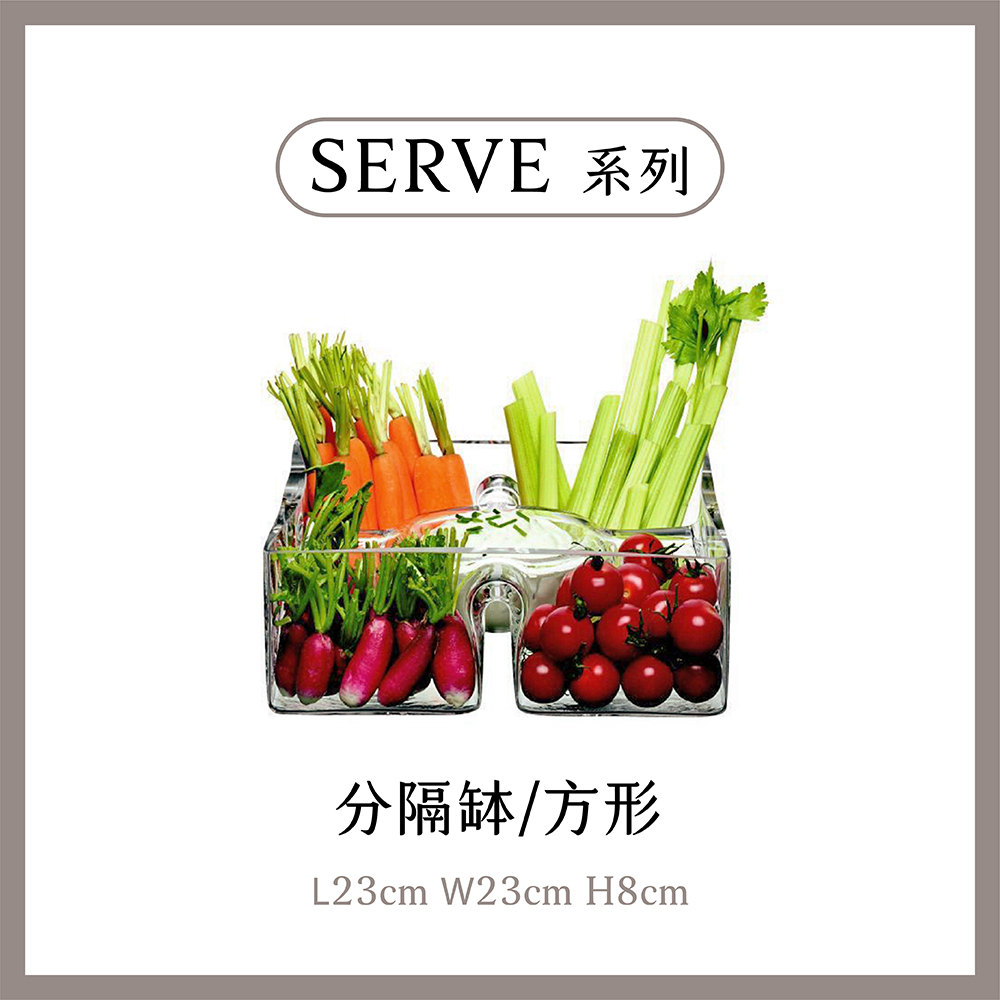 從碗和托盤到分隔盤,適合盛裝沙拉、小吃、甜點或鹹點烘焙食品,全方位的組合設計適用於各種食品,展現經典、簡單又不失剔透美感的效果。