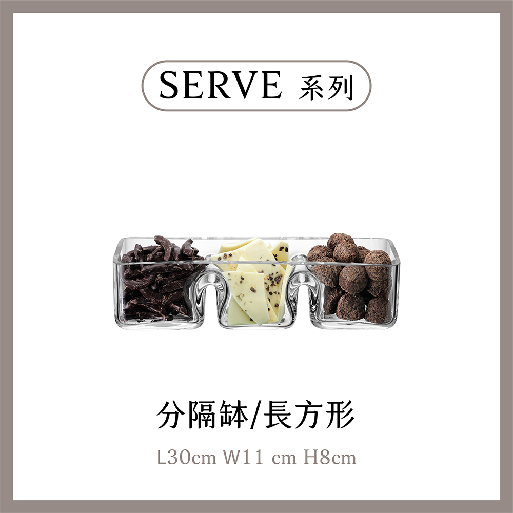 從碗和托盤到分隔盤,適合盛裝沙拉、小吃、甜點或鹹點烘焙食品,全方位的組合設計適用於各種食品,展現經典、簡單又不失剔透美感的效果。