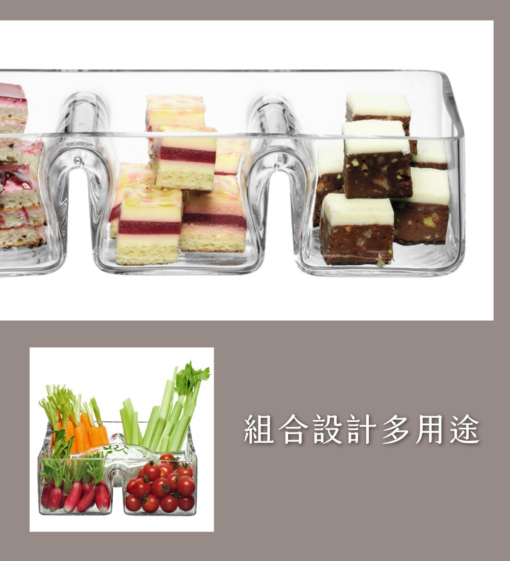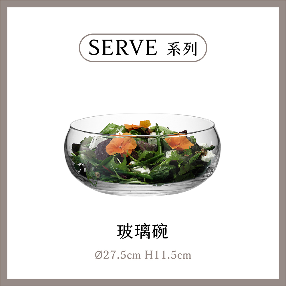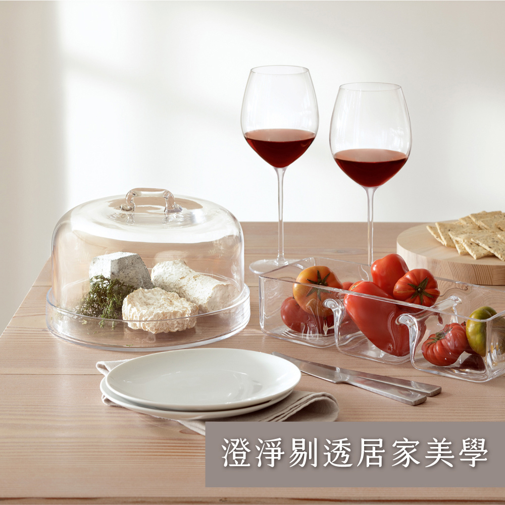 從碗和托盤到分隔盤,適合盛裝沙拉、小吃、甜點或鹹點烘焙食品,全方位的組合設計適用於各種食品,展現經典、簡單又不失剔透美感的效果。