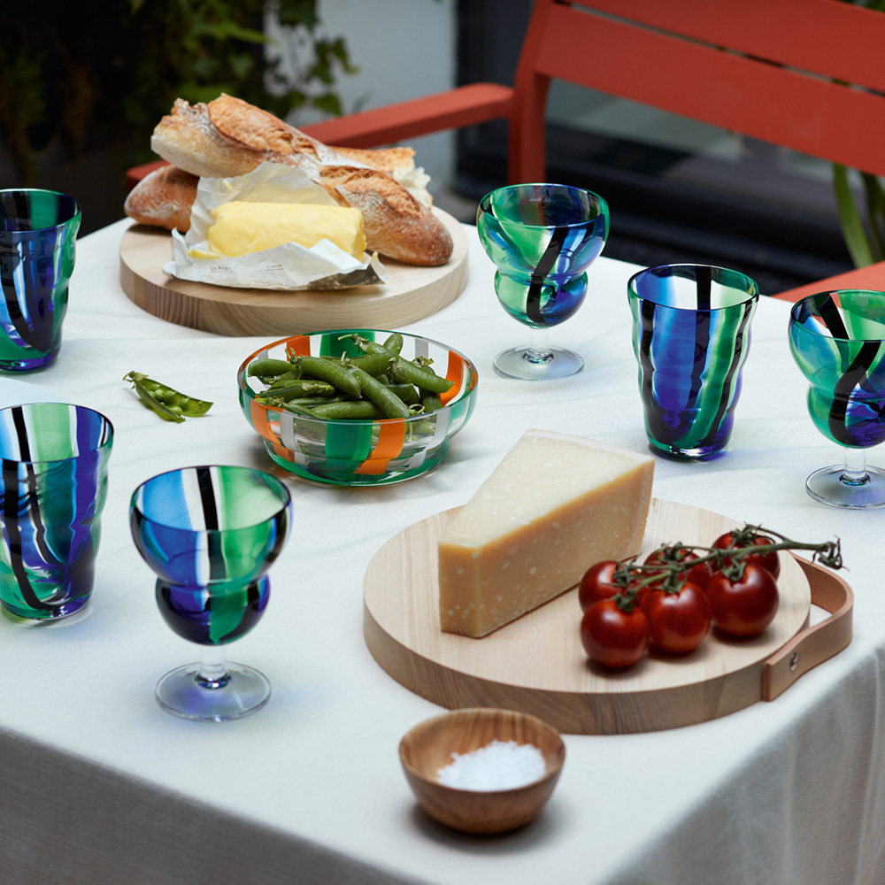 一系列經典口吹玻璃結合實心橡木的器皿,適用於各種場合。