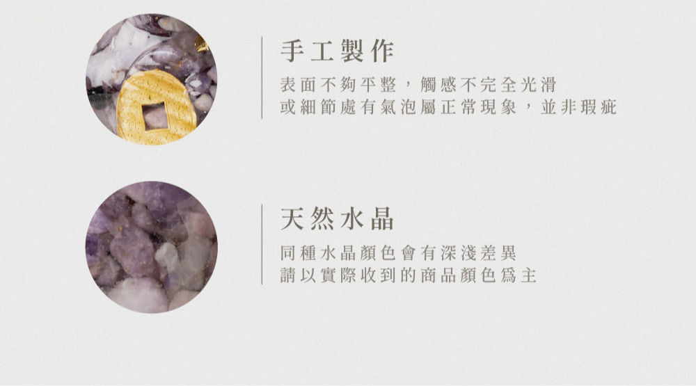 ◦ 商品為天然材質,同種水晶顏色會有深淺差異,請以實際收到的商品顏色為主。