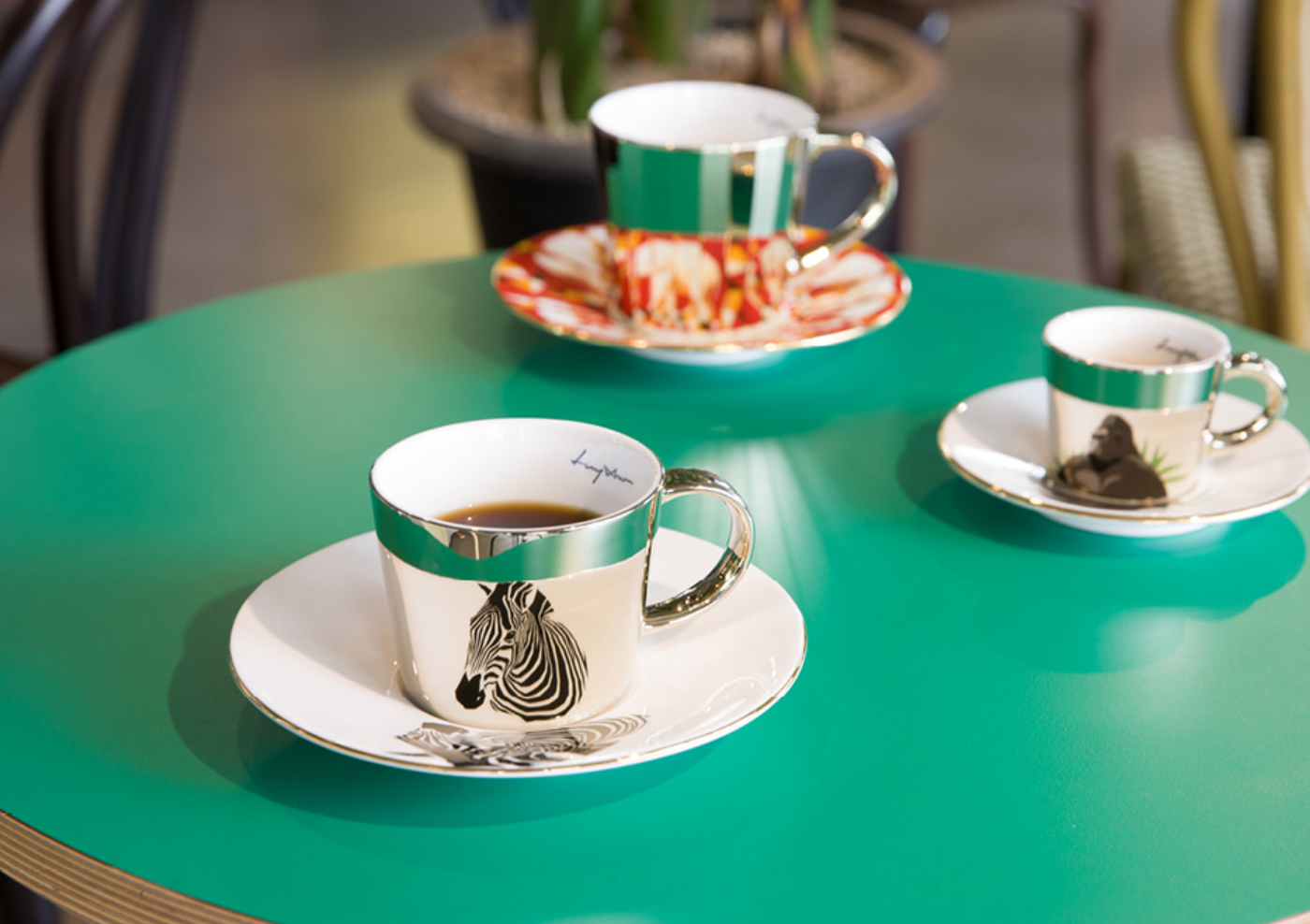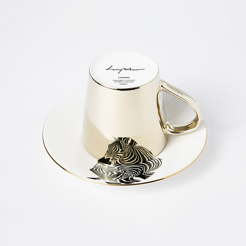 將杯子放在茶托上,杯子上的24面鏡子就會反射出來,茶托上隱藏在圖案中的圖像便會反覆出現。