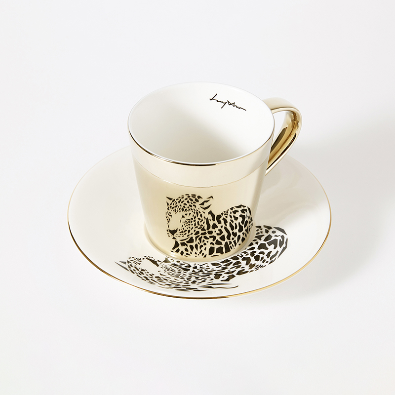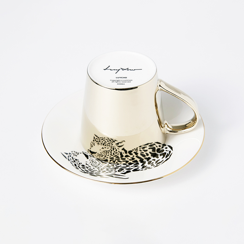 Luycho-鏡面倒影動物圖案咖啡杯-美洲豹-滑面