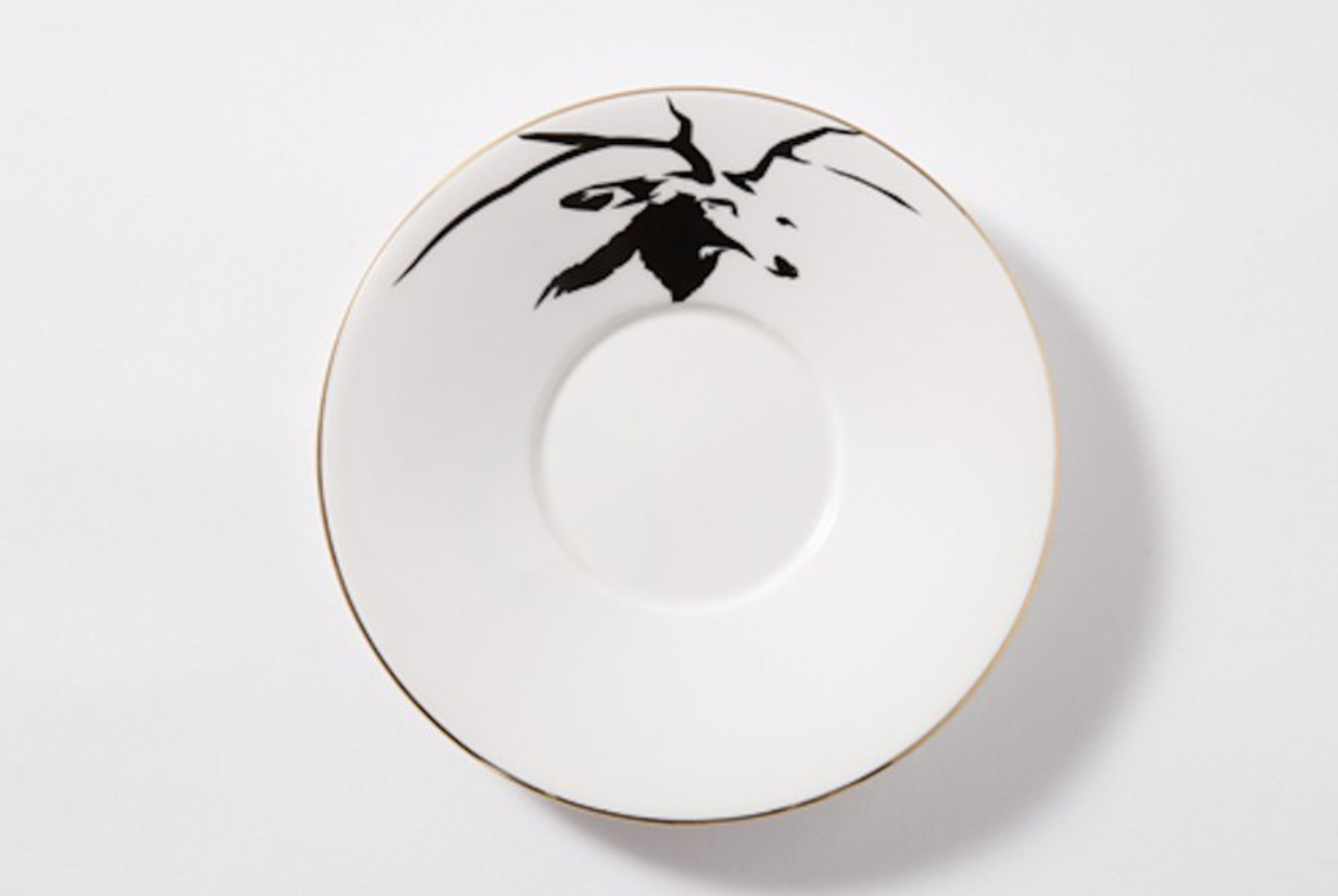 將杯子放在茶托上,杯子上的24面鏡子就會反射出來,茶托上隱藏在圖案中的圖像便會反覆出現。