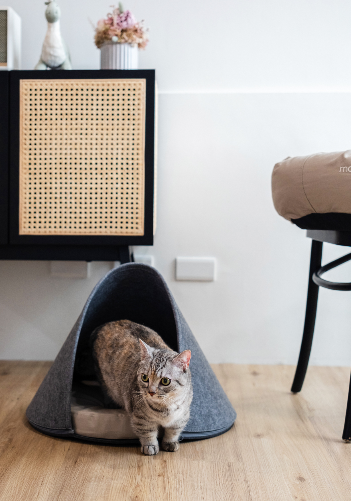 沉穩的灰色毛氈與經典大象灰底墊