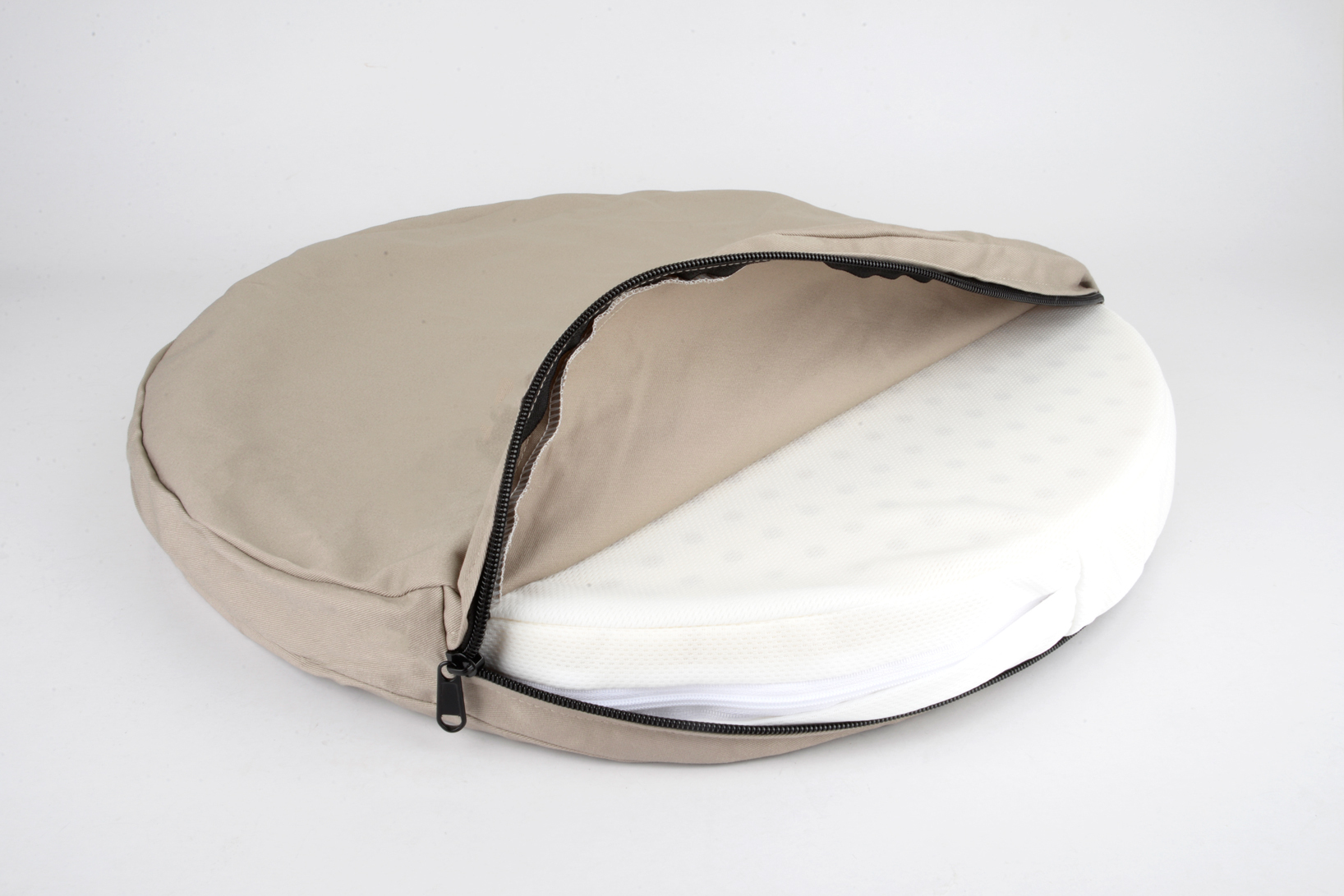 中間可拆式圓墊直徑47CM,嚴選斯里蘭卡天然乳膠墊, 柔軟Q彈, 能有效支撐毛孩關節與放鬆肌肉壓力