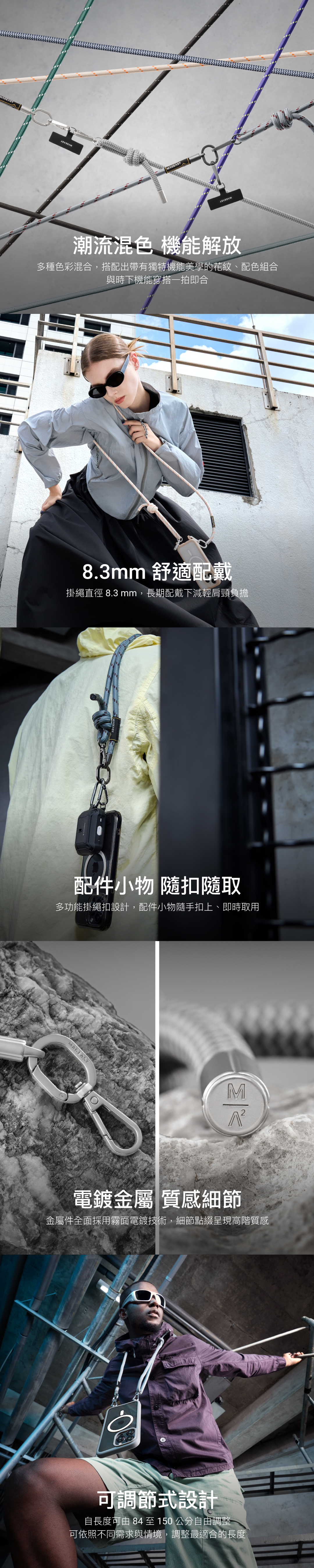 8.3mm 掛繩系列將色彩混合成多種花紋及配色,獨特的機能風格符合時下潮流,豐富的搭配性更能提升穿搭層次。