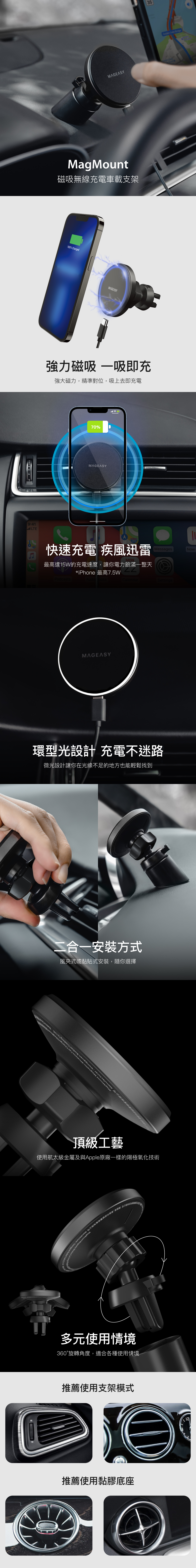 內容物:MagMount 磁吸無線充電車載支架x1, USB-C充電線x1