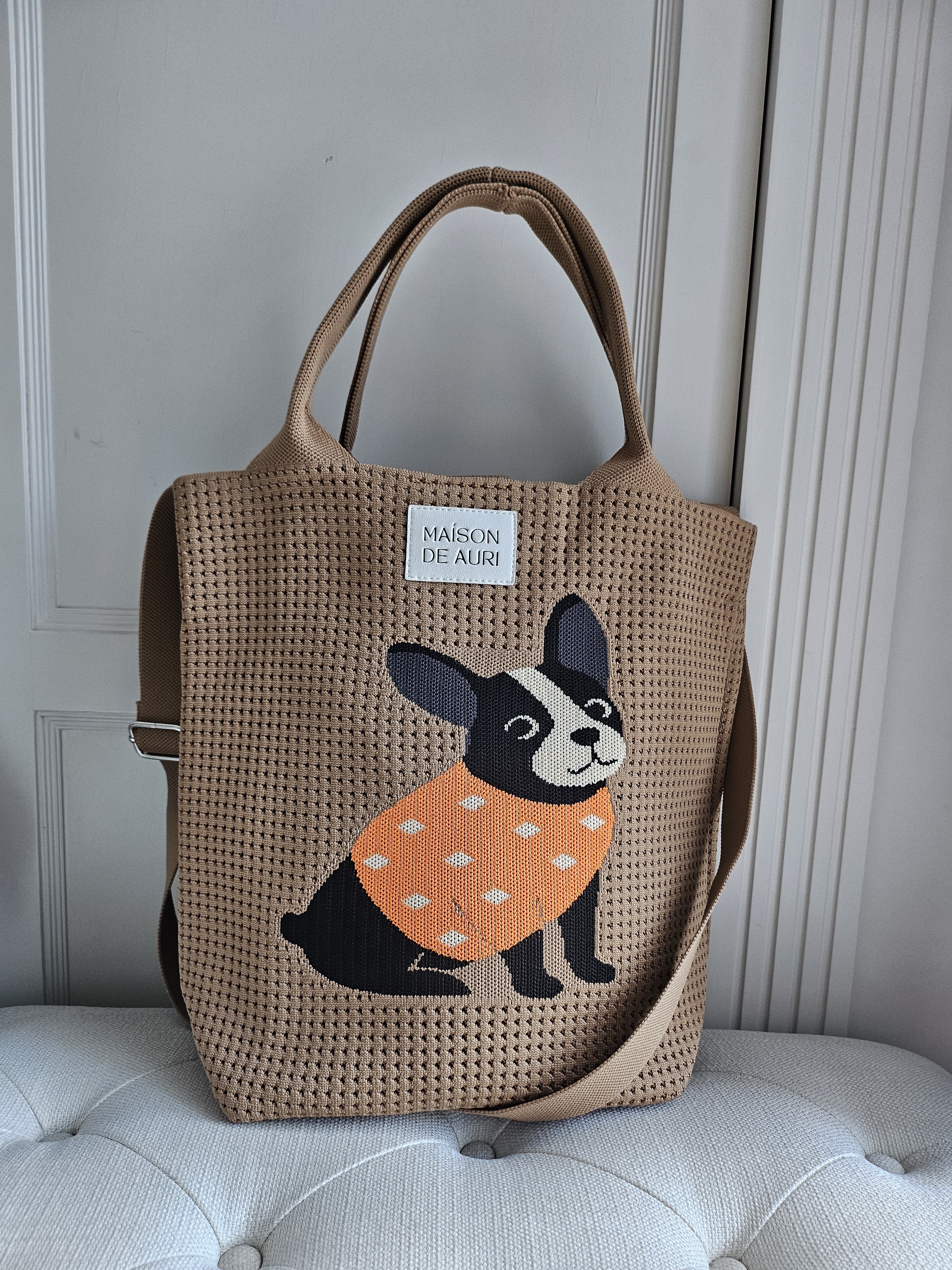 Maison de Auri 推出療癒度爆表的「法鬥派對包」,以可愛的法鬥圖案搭配俏皮橘點小衣,喚起每個熱愛生活的你心中那隻忠誠、勇敢又有點小脾氣的Frenchie靈魂。